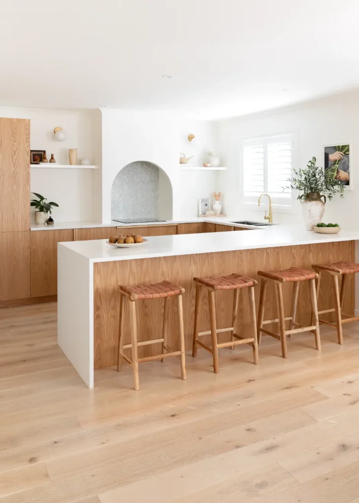 This well considered home is an efficient use of space, and boasts 5 bedrooms and 3 bathrooms. Incorporated are earthy tones and organic elements to make the home feel grounded with a sense of warmth. There are many stunning features throughout this home, including Limestone rendered walls, Carrara mosaic tiles, American-Oak Kitchen cabinetry, archway details, and travertine furnishings just to name a few.